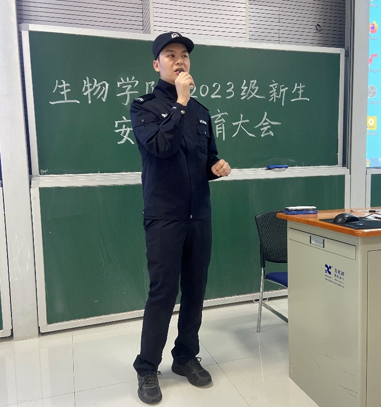 大会最后,于老师再次强调了交通安全的重要性,并对李警官、黄警官的耐心讲解表示了感谢。生物院新生安全教育大会在同学们热烈的掌声中圆满结束,本次大会加深了同学们对交通安全知识、法律法规的了解,增强了防诈骗意识,为未来四年的大学生活奠定了稳固的基石。