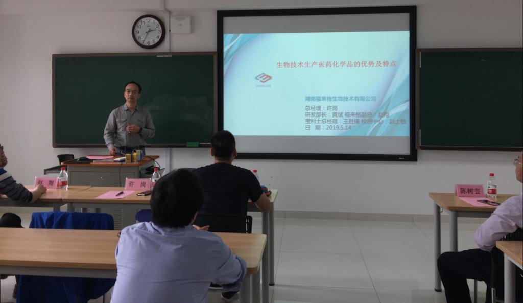 5月14日下午, 湖南福来格生物技术有限公司总裁许岗先生携研发、生产与检测等部门负责人以及福来格全资子公司湖南宝利士生物技术有限公司负责人等一行五人来色情直播