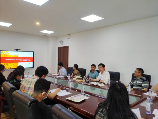 李勇军书记重点对《习近平著作选读》第一卷的“确保我国粮食安全”和“正确把握推进健康中国建设的重大问题”两个部分进行了领学。随后,以《保障粮食安全与大健康》为题进行了专题党课授课,从世界粮食安全问题、中国粮食生产现状和推进中国粮食安全等角度,对粮食安全问题进行了详细解读。邹志成副书记、何晓晓副院长、邱烨老师等分别进行了交流发言。