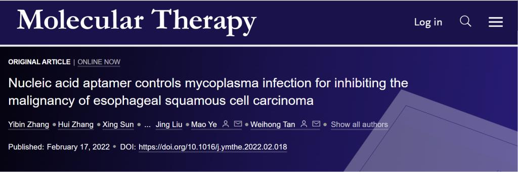 叶茂/谭蔚泓教授团队在利用抗支原体的核酸适体用于治疗食管鳞状细胞癌上取得进展,成果以研究论文Nucleic acid aptamer controls mycoplasma infection for inhibiting the malignancy of esophageal squamous cell carcinoma发表于Molecular Therapy。文章首次开发出了能中和猪鼻支原体感染的核酸适体。利用核酸适体的独特空间结构阻断猪鼻支原体与食管鳞状细胞癌细胞的结合,可以在体外和体内逆转猪鼻支原体所引起的食管鳞状细胞癌的恶性表型。研究结果有望开发成诊断和治疗猪鼻支原体感染的新型分子工具以及靶向猪鼻支原体的抗肿瘤First-in-Class药物。